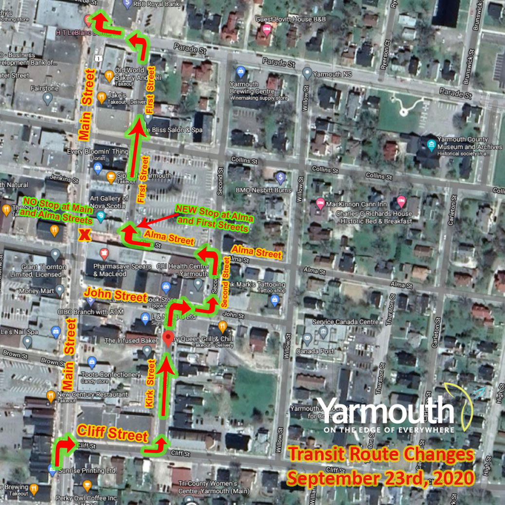➡️ It will then turn and travel North on Kirk Street, and then east on John Street to Second Street
